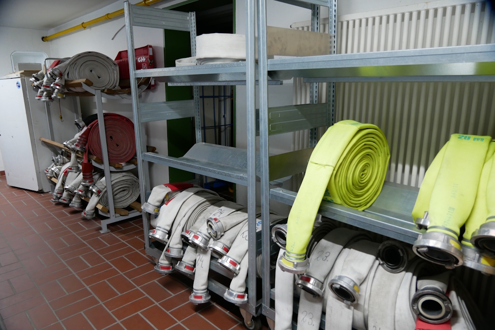Im Keller des Feuerwehrgerätehauses befindet sich die Schlauchwaschanlage. Hier werden die Schläuche nach ihrem Einsatz im Brandfall gereinigt.