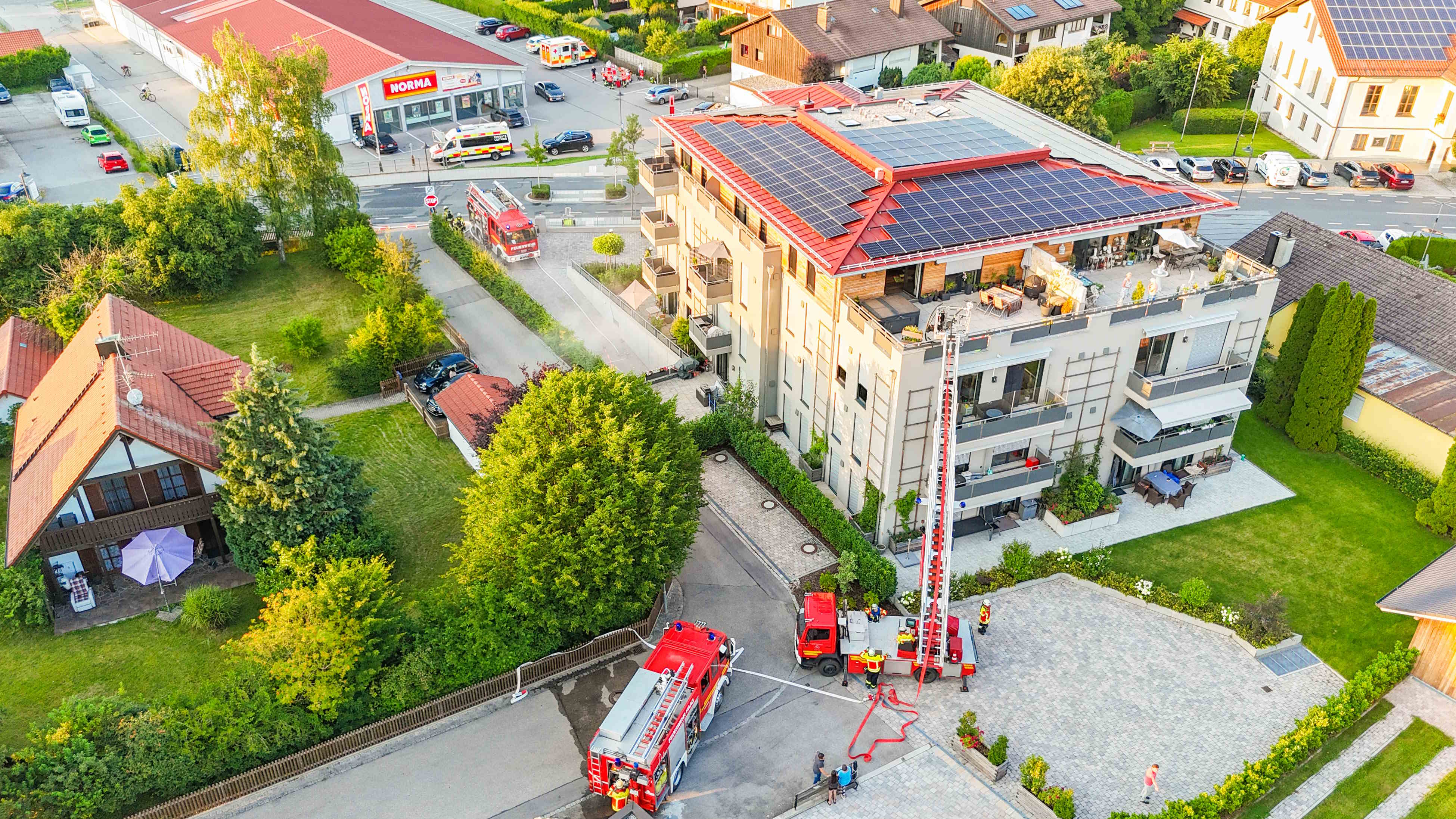 Aufgrund der starken Rauchentwicklung im gesamten Gebäude mussten parallel zur Brandbekämpfung auch noch mehrere Personen mithilfe der Drehleiter von den Obergeschossen gerettet werden. Durch den Einsatz von Atemschutz wurden auch im Gebäude Menschenrettungen durchgeführt. Nebenbei kümmerten sich weitere Trupps um die Be- und Entlüftung des Wohnhauses und der Tiefgarage.