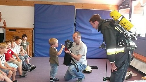 Wie jedes Jahr hielt auch heuer die Haager Feuerwehr wieder zusammen mit Herrn Franz Schustermann den Brandschutzerziehungs-Unterricht im Kindergarten am Schachenwald. Zwei Gruppen wurde unter Anleitung von Herrn Schustermann der richtige Umgang mit dem Feuer, Verhalten im Brandfall und Absetzen eines Notrufs auf der 112 beigebracht. Auch die Angst vor einem voll ausgerüsteten Atemschutzgeräteträger wurde den Kindern spielend genommen. Alle teilnehmenden Kinder haben die Aufgaben glänzend gemeistert und sind am Ende als 'Feuerwehrsherrifs' nach Hause gegangen. Vielen Dank für die gute Vorarbeit der Damen des Haager Kindergartens, wir freuen uns auf den Besuch der Gruppen am Freitag in unserem Gerätehaus.
