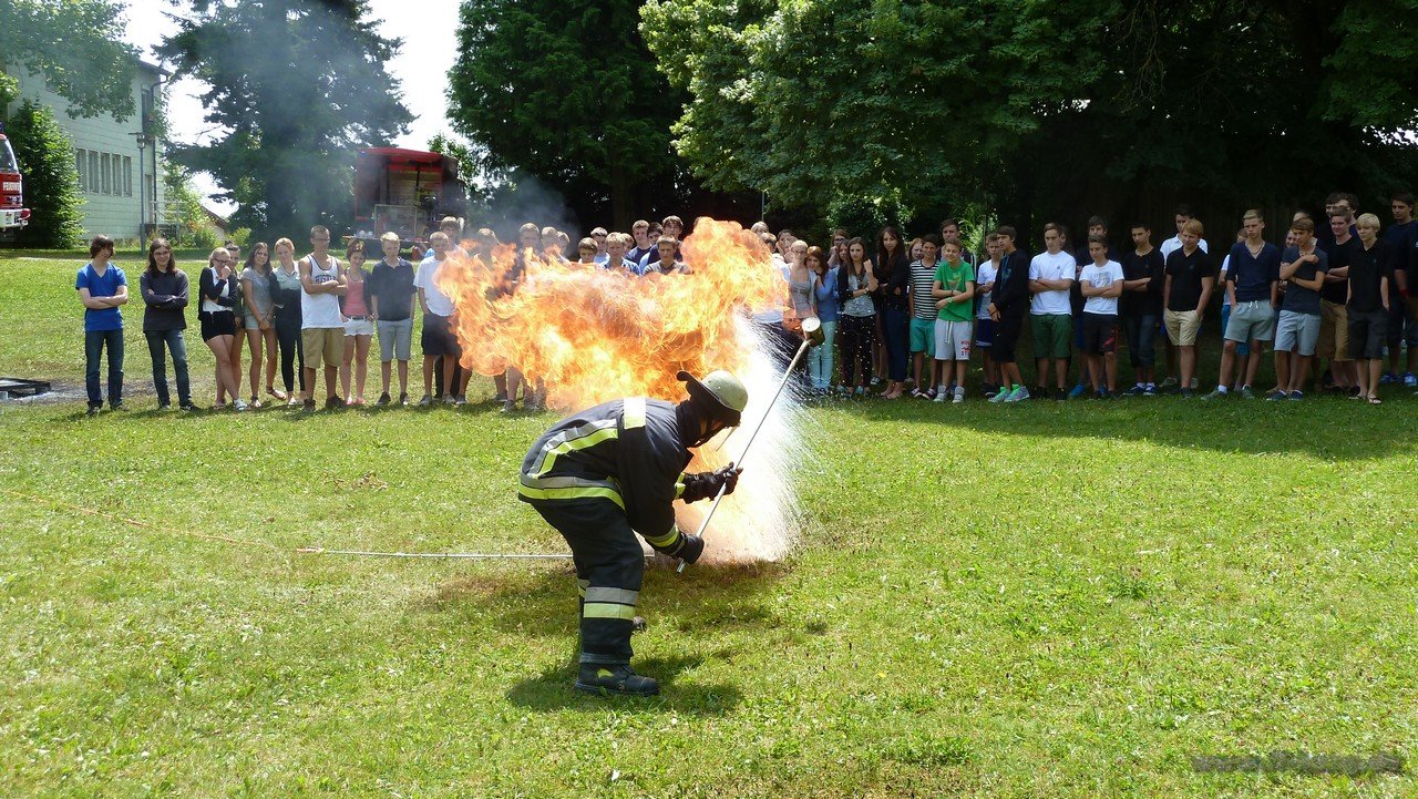 Am selben Tag nachmittags gab es für die Erzieherinnen des Kindergarten am Schachenwald und vom FAM-Zentrum ein Sondertraining von uns. Auch hier wurde der richtige Umgang mit dem Feuerlöscher geübt, sowie der sichere Umgang mit einer Löschdecke. Zur Veranschaulichung des erhöhten Brandrisikos wurde noch ein trockener Christbaum entfacht.