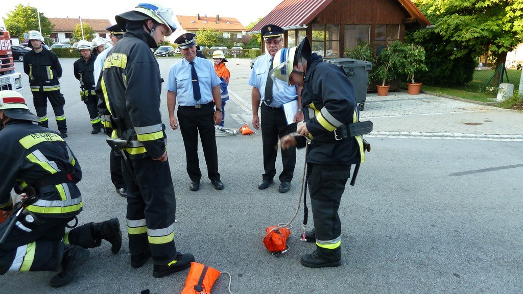 Am vergangenen Mittwoch legten zwei Gruppen erfolgreich das "Leistungsabzeichen Wasser" ab. Nach Auslosung der Aufgaben und Zusatzfragen sowie Ausfüllen des Fragebogens wurde die Fähigkeit des Knotenbindens geprüft. Im Anschluss wurde der Aufbau des Löschangriffs durchgeführt, hierfür hatten die Prüflinge 300 Sekunden Zeit. Letzter Teil der Abnahme war Saugschlauchkuppeln - Maschinist, Wassertrupp und Schlauchtrupp mussten in 100 Sekunden mit A-Schläuchen eine theoretische Wasser-Entnahmestelle aufbauen, welche nach Fertigstellung den Eingangsdruck für 120 Sekunden mit +/- 0,1 bar halten muss. Alle Aufgaben wurden gemeistert, jeder Prüfling konnte am Ende sein neues Abzeichen entgegen nehmen.