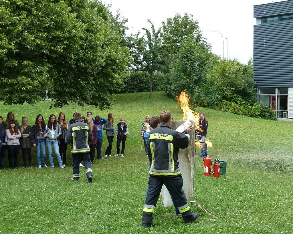 Am 11. Juli hielten wir wieder unsere jährliche Brandschutzerziehung in der Haager Realschule ab. Den anwesenden Schülern und Lehrkräften wurde das richtige Verhalten in Notsituationen und die von unterschiedlichsten Brandarten ausgehenden Gefahren vermittelt. Richtig spannend wurde es dann als die Teilnehmer selbst das richtige Löschen per Feuerlöscher und Löschdecke üben konnten. Zur Veranschaulichung des erhöhten Brandrisikos wurde noch mehrere trockenen Christbäume entfacht.