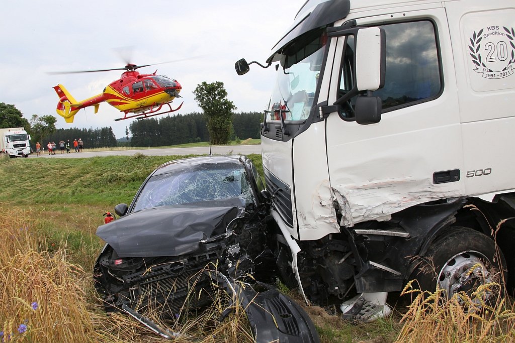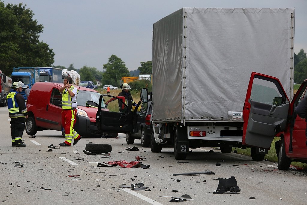 Alamierung zu einem Verkehrsunfall mit mehreren Fahrzeugen und einem LKW. Betreuung von 4 Verletzen bis zum Eintreffen des Rettungsdienstes. Absicherung der Unfallstelle, Aufbau einer Umleitung und Unterstützung bei der Fahrzeugbergung. (Bericht Innsalzach24.de) Foto fib
