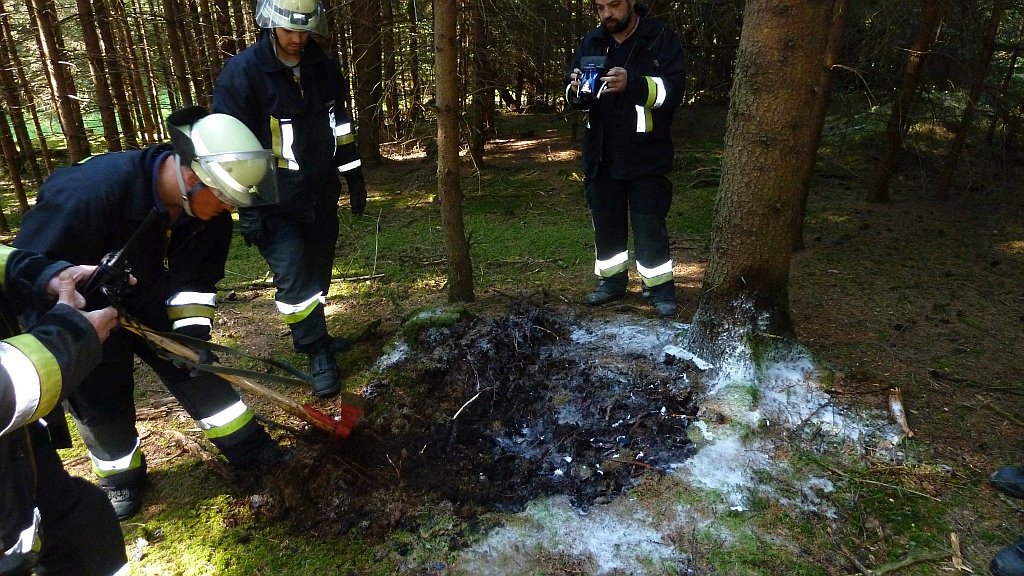 Alarmierung um 9 Uhr früh zum Brand eines Baumstumpfes im Schachenwald. Mittels High-Press-Löscher sowie Wasser-Schaumlöscher wurde der Brand abgelöscht. Per Wärmebildkamera wurde der Waldboden auf weitere Brandherde kontrolliert.