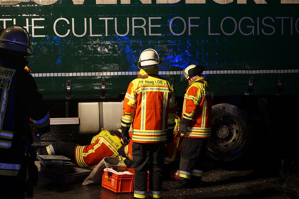 In den frühen Morgenstunden gegen 2:30 Uhr wurden wir mit den Feuerwehren Kirchdorf und Ramsau zu einem Verkehrsunfall auf der B12 Richtung Ramsau alarmiert. Durchs Abkommen von der Fahrbahn verlor der Fahrer die Kontrolle über sein Gespann, der Anhänger kippte im Graben um und die Zugmaschine stellte sich quer auf die B12. Auslaufender Kraftstoff wurde von uns aufgefangen und umgepumpt, eine Fachfirma stellte den havarierten Anhänger auf und schleppte den LKW ab. Die Bundesstraße war für die gesamte Zeit komplett gesperrt, eine Umleitung eingerichtet und konnte zum Berufsverkehr wieder geöffnet werden. Bericht innsalzach24.de