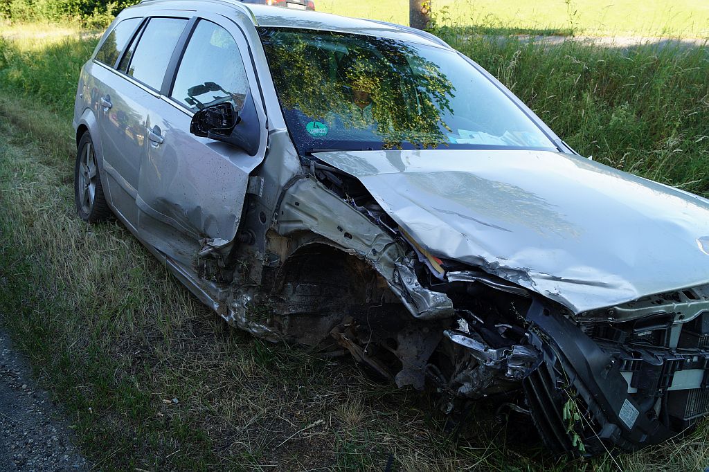 Vermutlich aufgrund unangepasster Fahrweise bei Starkregen kam ein Golf III auf Sommerreifen