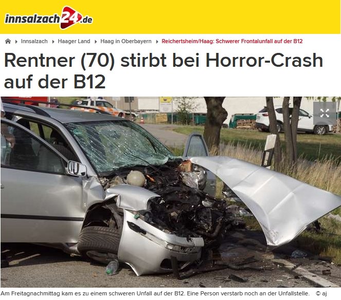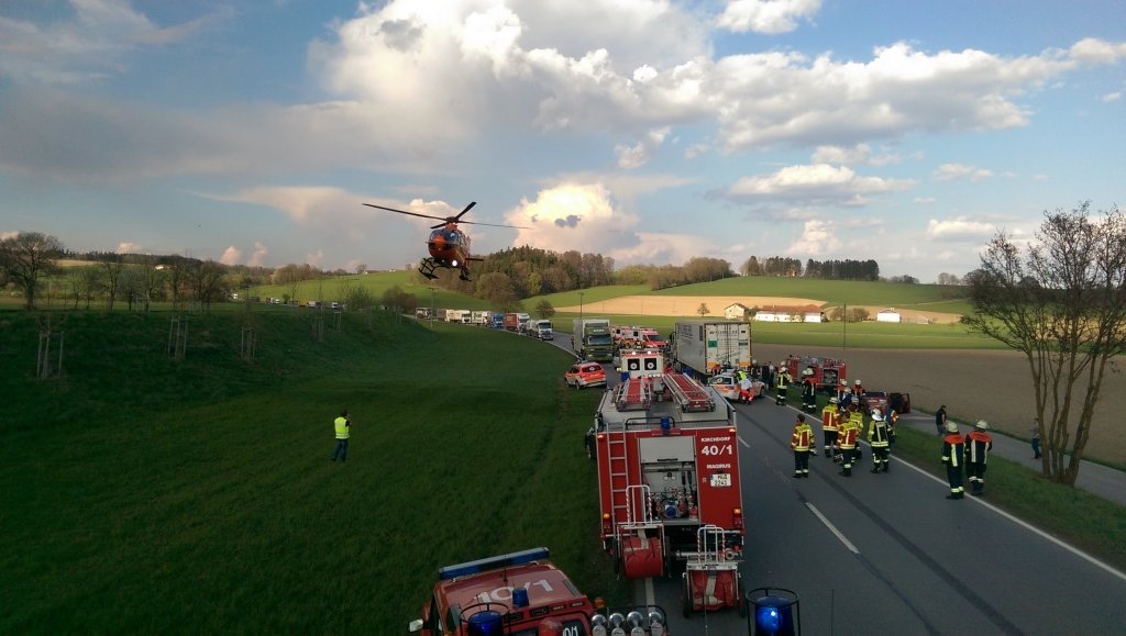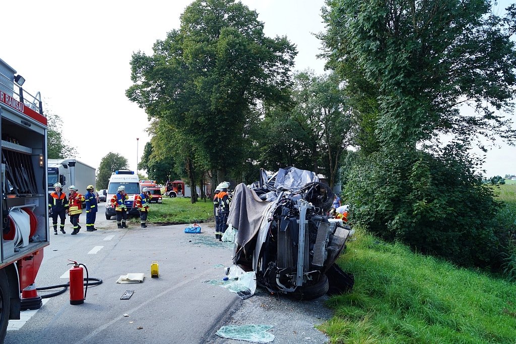 rneut ereignete sich auf der B12 Höhe des Salzstadels / Furth im Haager Osten ein folgenschwerer Verkehrsunfall. Ein Renault Traffic kam in Richtung Mühldorf über die Gegenfahrbahn ins Bankett und kollidierte vorn links mit einem Baum. Der Fahrer überlebte den Aufprall nicht, seine Mitfahrer wurden teils schwer verletzt. Die Verletzten wurden vom Rettungsdienst betreut, wir errichteten einen Sichtschutz um sie vor Neugierigen zu schützen. Die Bundesstraße musste total gesperrt werden, eine Umleitung wurde eingerichtet.