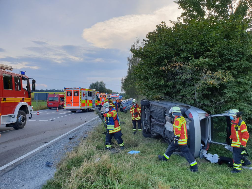 Am späten Dienstag Nachmittag wurden wir gemeinsam mit der Nachbarwehr Kirchdorf zu einem schweren Verkehrsunfall auf der Ortsumgehungsstraße Höhe Kreuzung Lengmoos/Gars alarmiert. Eine Ford-Fahrerin mit zwei Kindern an Bord kollidierte im Kreuzungsbereich mit einem auf der Vorfahrtsstraße fahrenden Audi-Fahrer. Glücklicherweise wurde niemand eingeklemmt, die verletzten Personen wurden vom Rettungsdienst betreut und in umliegende Krankenhäuser verbracht. Wir errichteten mit den Kollegen aus Kirchdorf eine Umleitung, reinigten die Straße und am späten Abend konnte die B15 nach Bergung der beschädigten PKW's wieder für den Verkehr freigegeben werden.