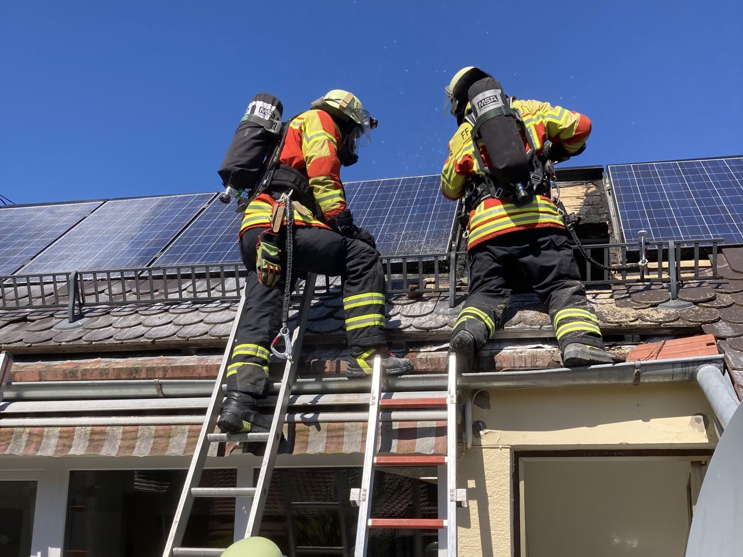 Heute Vormittag wurden wir zu einer Rauchentwicklung auf dem Dach eines Gebäudes in der Rute gerufen. Diese schien von dessen Photovoltaikanlage auszugehen. Durch das schnelle Eingreifen der Einsatzkräfte konnte ein Übergreifen des Brandes auf die anliegenden Gebäude verhindert werden.