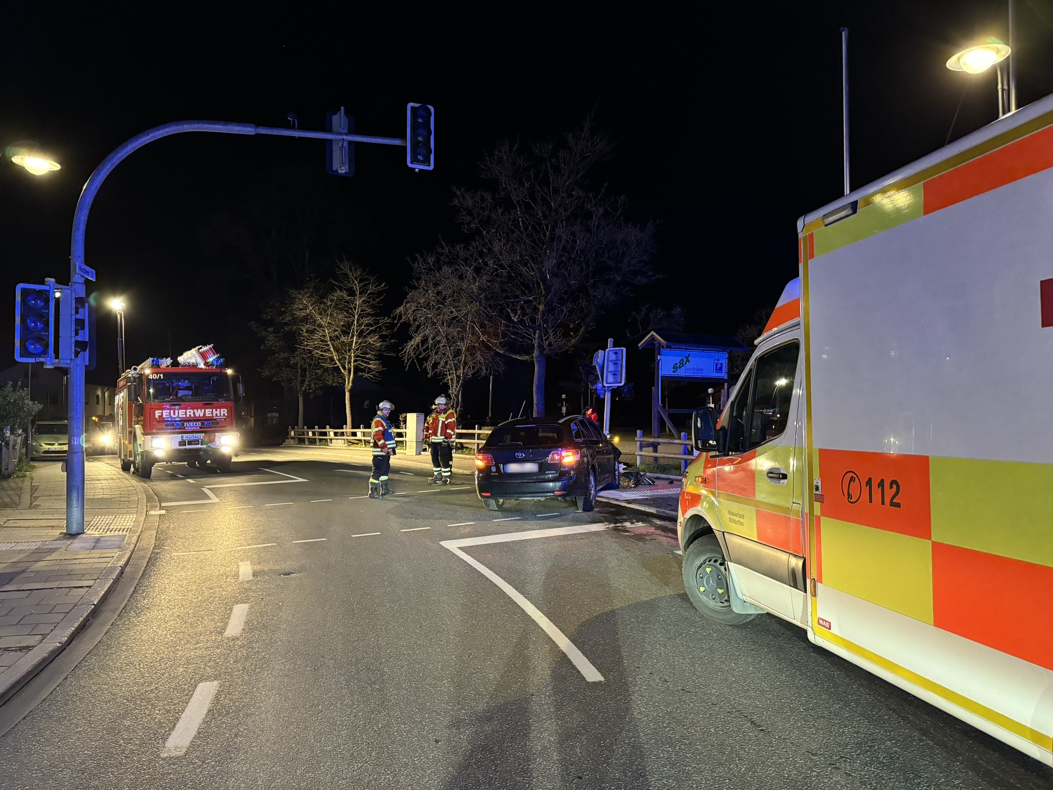 Gegen 21 Uhr wurden wir heute Abend zu einem leichten Verkehrsunfall in die Münchener Str. alarmiert. Beim Eintreffen stellten wir fest, dass dort ein Pkw mit einer Ampelanlage kollidiert war. Wir kümmerten uns um die auslaufenden Betriebsstoffe des Fahrzeugs und sperrten währenddessen die Straße. Der verunfallte Pkw wurde dann vom Abschleppdienst abgeschleppt.
