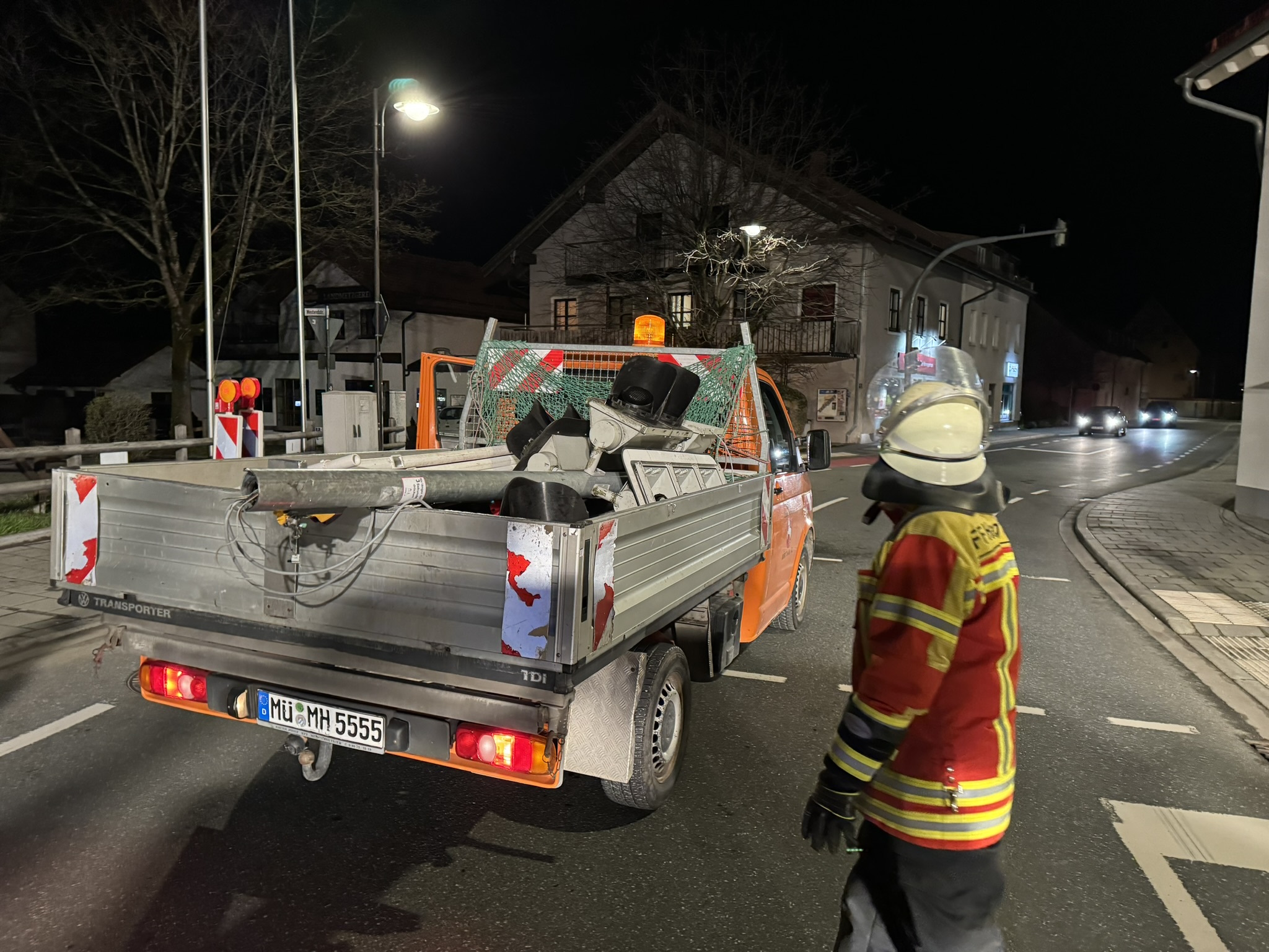 Da die schräg gebogene Ampel eine Gefahr für vorbeilaufende Fußgänger darstellte und zudem funktionsunfähig war, wurde sie vom haager Bauhof entfernt. Anschließend konnten wir die Einsatzstelle verlassen.