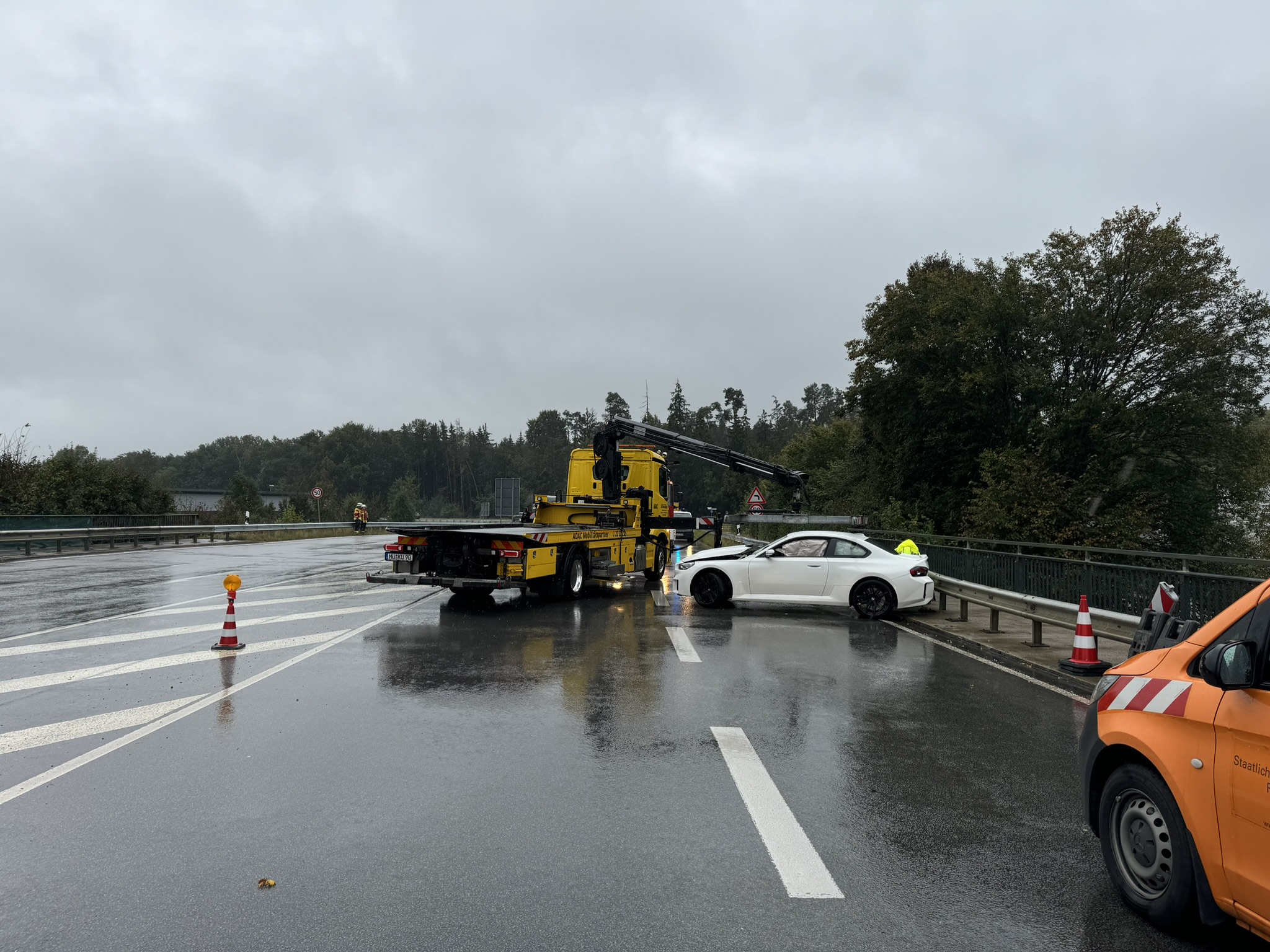 Dort war ein BMW M2 in Fahrtrichtung Haag mit der Leitplanke kollidiert und hatte sich dann quer gestellt.