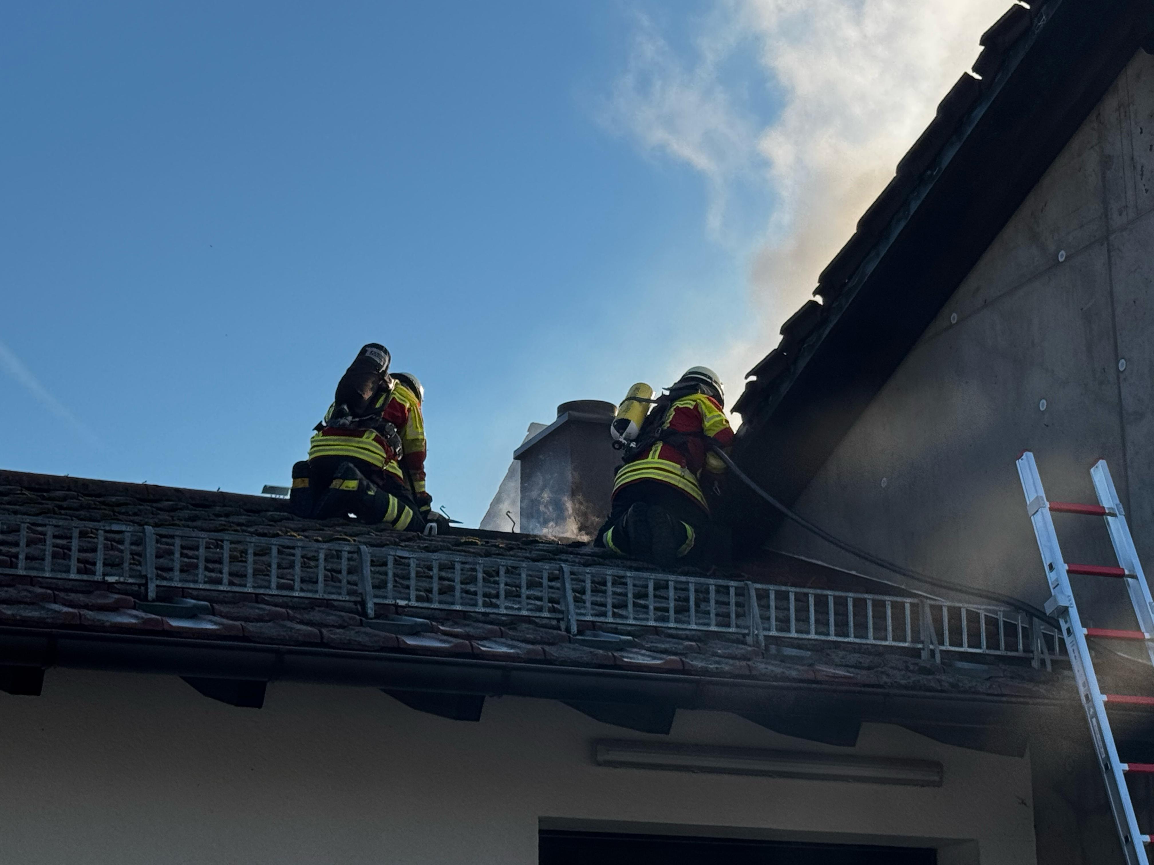 Wir unterstützten die lokalen Feuerwehren mit unserer Drehleiter und mit mehreren Atemschutz-Trupps.