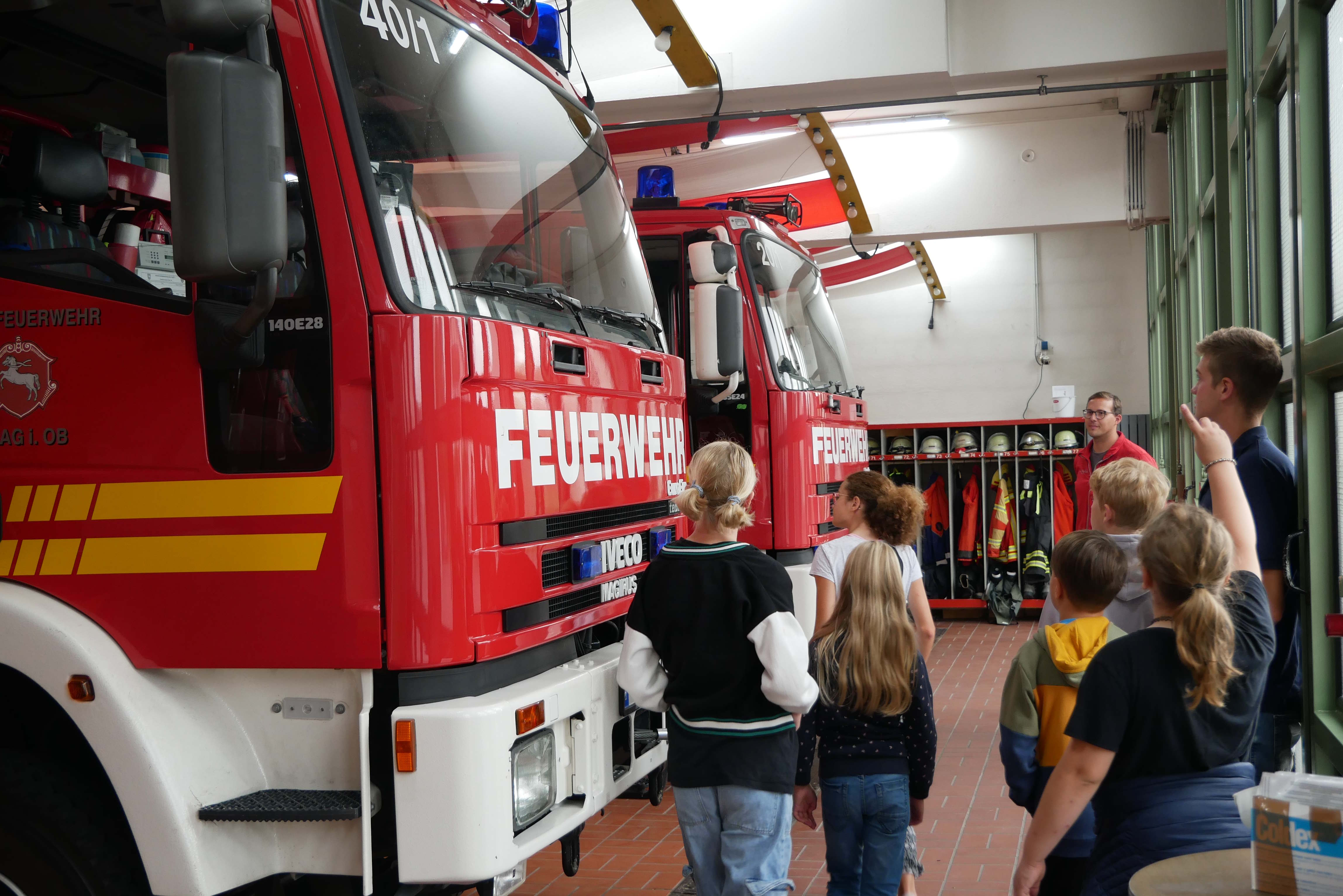 Nach der Begrüßung ging es auch direkt mit einer Führung durchs Gerätehaus los. Dabei konnten die Kinder unsere Fahrzeuge besichtigen und auch mal durch die Atemschutzübungsstrecke klettern.