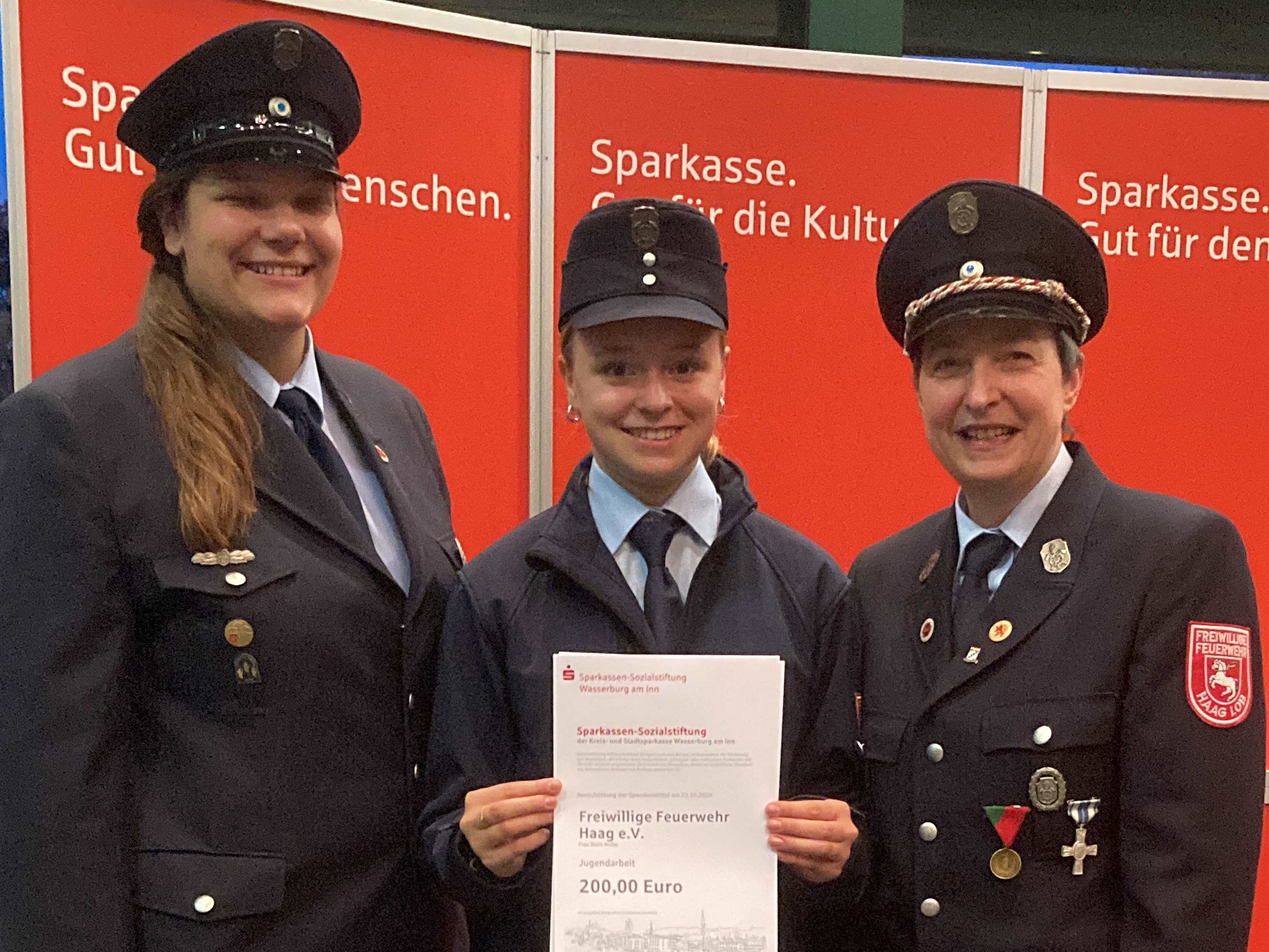 Dazu fuhren Vereinsvorsitzende Doris Noller, Jugendausbilderin Maria Reich und Jugendfeuerwehrlerin Afra Schuster zur Sparkasse Wasserburg, in dessen Räumlichkeiten die Spendenübergaben für insgesamt 50 Vereine aus der Region statt fand.