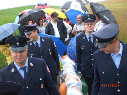 Am Samstag waren wir von unserem Kollegen Josef Huber zum Weisert seines erstgeborenen Maximilian eingeladen. Standesgemäß in Uniform mit Weisterwecken und Begleitmusik machten wir uns trotz starken Regenfalls um 15.00 Uhr auf den Weg richtung Lerchenberg. Einen Teil der doch recht langen Strecke legten wir aufgrund der Witterung in unseren PKW's (der Wecken im LKW) zurück. Nach der Geschenkübergabe und Rede unseres Vorstands wurde der 6 Meter lange Wecken vom Gastgeber angeschnitten und mit den Handwürsten an die hungrigen Träger und Begleiter verteilt. So nahm das Fest seinen lauf und endete erst in den frühen Morgenstunden. Bilder gibts auch: [Klick]