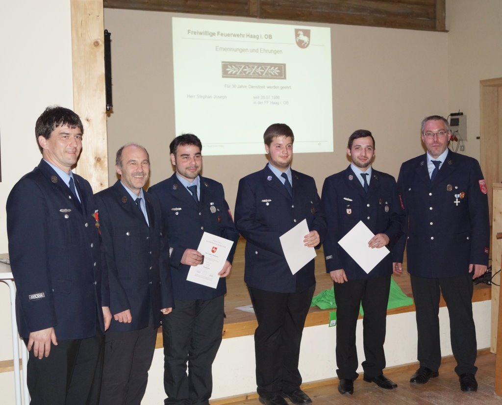 Atemschutzleiter Thomas Schober referierte über Tätigkeiten, Ausbildung- und Einsätze der Abteilung Atemschutz. Im Jahr 2015 wurden insgesamt 11 Einsätze mit Atemschutzbeteiligung absolviert, wir hatten keine verletzten Kameraden zu verzeichnen. Jugendwart Josef Einberger bedankte sich in seiner Rede bei allen Unterstützern der Haager Feuerwehranwärter.