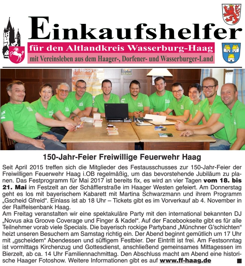 Bericht Einkaufshelfer zur 150-Jahr-Feier